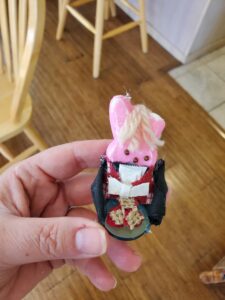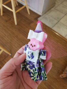 I love these tiny outfits (and the plate of jam tarts!) so much! Take a bow and a jam tart, Carla and Rowan! Thank you so much for bringing Charlotte and Robert to peep. It makes me so happy to know that Charlotte and Robert have found their rainbow-hued unicorn.